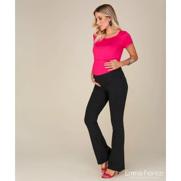 Calça Gestante Flare cor Preta, em Malha, proporcionando conforto extremo para a Gestante. Cós anatômico do mesmo tecido, sem elástico, acomodando perfeitamente a barriga. Caimento perfeito, e peça extremamente confortável. Bolsos no Bumbum.