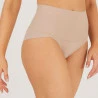 Calcinha Cintura Alta, Base Larga em tecido tecnológico Fit leve e reforçado, sem costuras nas laterais, Modeladora de Flancos, Abdomen e para alinhamento da Cintura. Com poucas Costuras, sem Elasticos, e Compressão moderada, cor Nude. Para uso Diário, pode ser usada também no Pós Parto, e para compressão do abdomen para as não gestantes. Se usada no Pós Parto, não pega no corte cesárea . As Laterais mais largas se ajustam ao corpo com perfeição.
