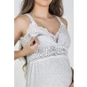Camisola e Robe Amamentação Mescla Cinza/Renda Branca.