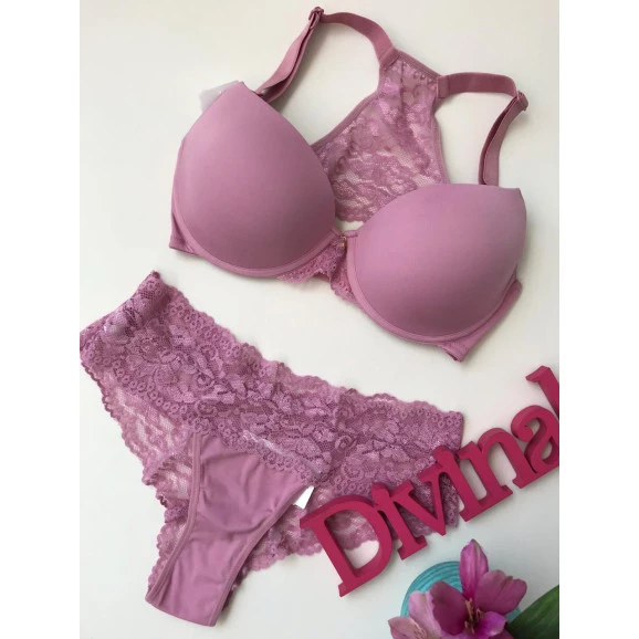 Conjunto Amamentação com bojo, com aro, em microfibra cor Bruma/Rosa com detalhes em renda Bruma, e costas em renda estilo nadador. Sutiã de Amamentação com bojos macios e maleáveis, com aro, em Microfibra com detalhes em Renda Bruma e costas em renda estilo nadador. Fecho para Amamentação nas alças frontais. Alças largas e reforçadas (18mm), oferecendo excelente sustentação dos seios. Laterais reforçadas em Microfibra. Abotoamento com três ajustes nas costas. Calcinha modelo Calecon, frente em microfibra, cintura baixa, cós em renda sem elástico para não apertar a barriga. Bumbum todo em renda. Elástico apenas nas pernas. Forrada internamente em 100% algodão. A calcinha segue o tamanho do sutiã. Composição das peças: 91% Poliamida, 9% Elastano Renda: 90% Poliamida, 10% Elastano