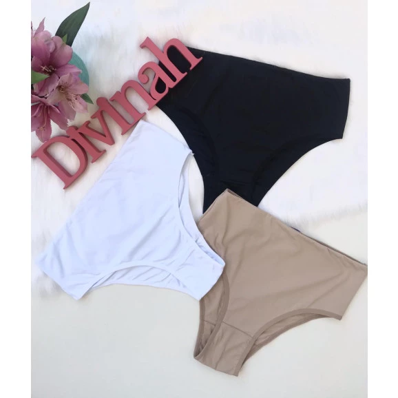 Kit formado por 3 Calcinhas gestante em Microfibra com cintura alta, confeccionada com dupla camada de tecido na frente. Modelagem anatômica com elástico somente nas costas e nas pernas, oferecendo conforto mesmo com o crescimento da barriga da gestante. Pode ser usada também no pós-parto. As peças que compõem o Kit serão: 1 na cor Branca, 1 na cor Preta e 1 na cor Chocolate.Composição: 88% Poliamida e 12% Elastano.