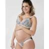 Sutiã em renda e tule, sem bojo, com aros plásticos, forrado em algodão penteado, alças e laterais reforçadas em renda e abotoamento com múltiplos ajustes. Fecho para amamentação nas alças frontais. Oferece excelente sustentação dos seios. Autorizado pelo controle de qualidade do fabricante. Marca Amari