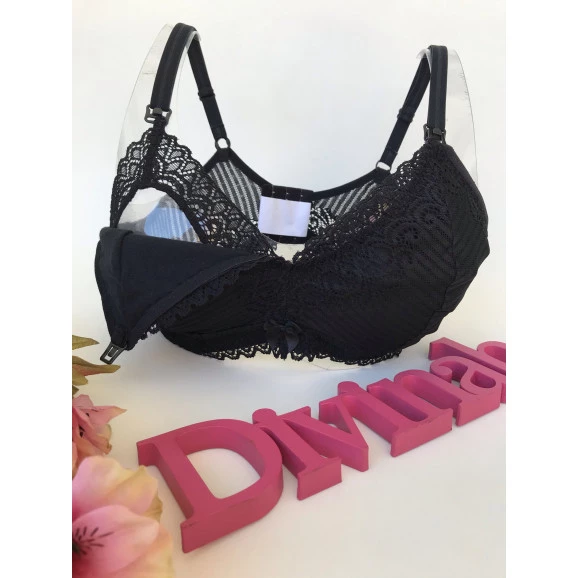 Sutiã de Amamentação todo em Renda sem bojo e sem aro. As alças reguláveis, fecho com três regulagens nas costas, abertura com fecho click para amamentação e busto forrado em 100% algodão. Costas e laterais largas para maior sustentação. Quando abaixado para amamentação, aparece o triângulo em renda ao redor do busto. Com um design moderno, a modelagem foi desenvolvida para facilitar a amamentação, e oferecer beleza e conforto para as mamães. Pode Haver Variação de Renda.