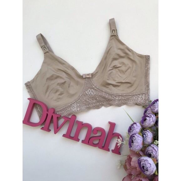Sutiã de Amamentação em Soft Compress cor Chocolate, sem bojo, sem aro, costas, laterais e base em renda Chocolate. Possui alças e laterais mais largas oferecendo excelente sustenação. Fecho para amamentação nas alças frontais.