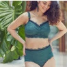 Top de Amamentação em renda cor Verde. Marca Amari. Top em renda, franzido, forrado em microfibra, sem bojo, sem aro, alças e laterais reforçadas e forradas em renda. Oferece excelente sustentação dos seios. Autorizado pelo controle de qualidade do fabricante. Modelagem acompanha as mudanças do corpo da gestante.
